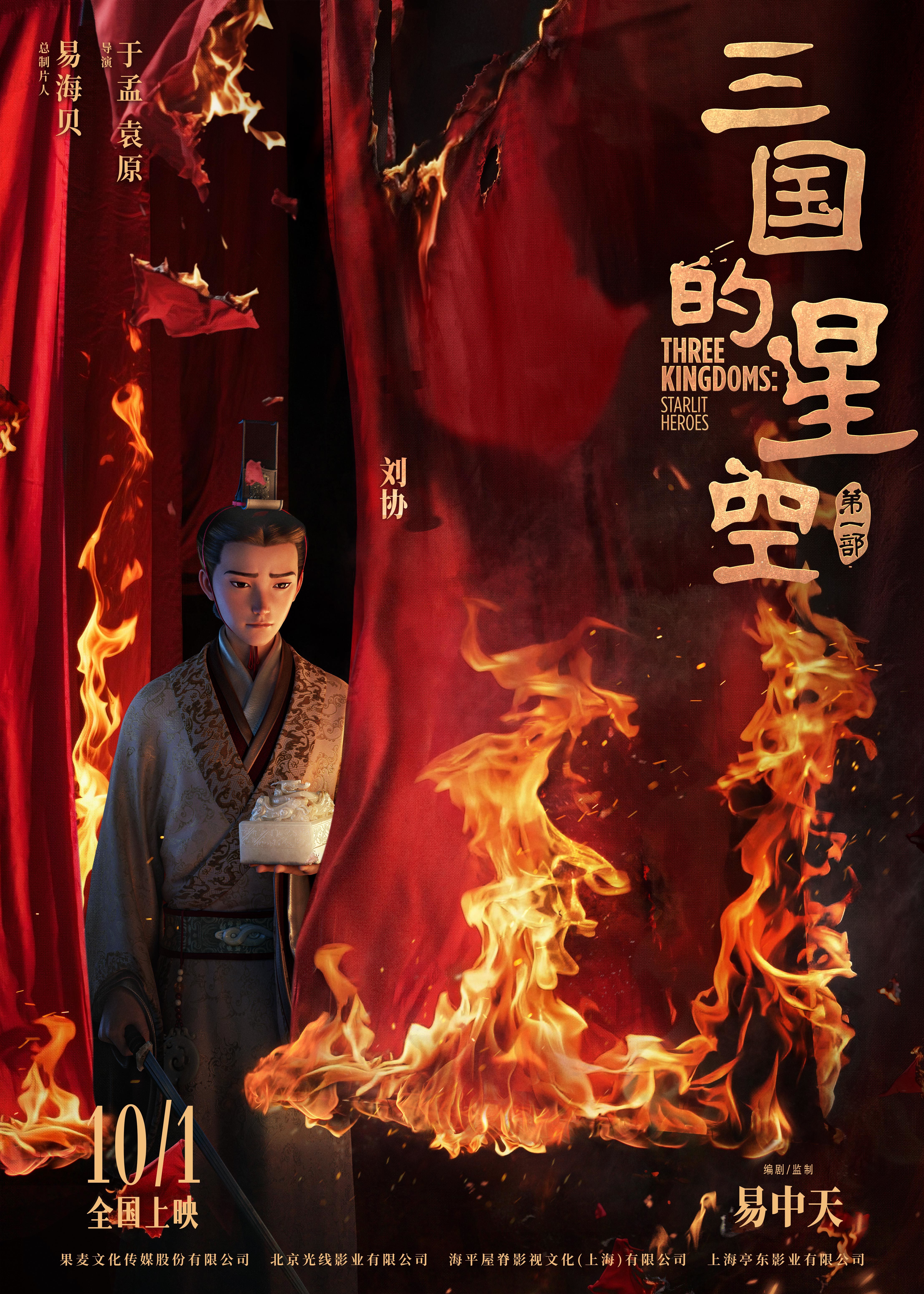 近日,动画电影《三国的星空第一部》发布「用课本打开三国」创意预告并官宣预售开启。预告中呈现语文、历史、地理等学科知识,从诗歌到史学到地理布局,三国让课本知识生动跃然银幕。电影由易中天编剧、监制,于孟、袁原执导,易海贝任总制片人。果麦文化传媒股份有限公司、北京光线影业有限公司、海平屋脊影视文化(上海)有限公司、上海亭东影业有限公司出品。现预售已开启,10月1日,全国上映。